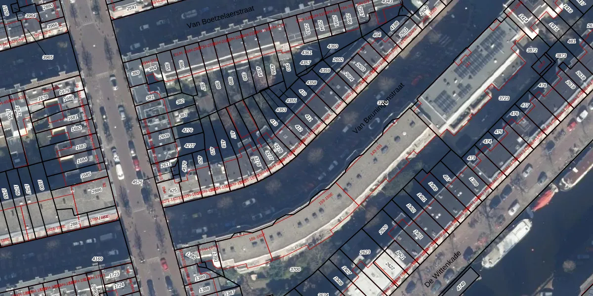 Het adres is gelegen op perceel 413 in de sectie Y en de kadastrale gemeente Amsterdam. De kadastrale aanduiding is aldus ASD21-Y-413. Het perceel is 107 m² groot. Dat is kleiner dan de gemiddelde perceeloppervlakte in Amsterdam, dat op 769,96 m² ligt. De grootste perceeloppervlakte in de kadastrale gemeente is 7,1 ha. De kleinste oppervlakte bedraagt 0 m². Er zijn 4 adressen aanwezig op het perceel. De huidige grenzen van het perceel zijn digitaal in de Basisregistratie Kadaster (BRK) geregistreerd op 29-01-2007.
