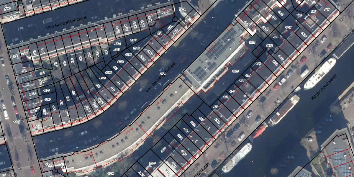 Het adres is gelegen op perceel 3700 in de sectie Y en de kadastrale gemeente Amsterdam. De kadastrale aanduiding is aldus ASD21-Y-3700. De oppervlakte van het perceel is 1700 m². Dat is groter dan gemiddeld in Amsterdam, waar de gemiddelde perceeloppervlakte op 769,96 m² ligt. De grootste perceeloppervlakte in de kadastrale gemeente is 7,1 ha. De kleinste oppervlakte bedraagt 0 m². Op het perceel zijn 47 adressen aanwezig. De laatste wijziging in het de Basisregistratie Kadaster (BRK) was op 30-04-2024.