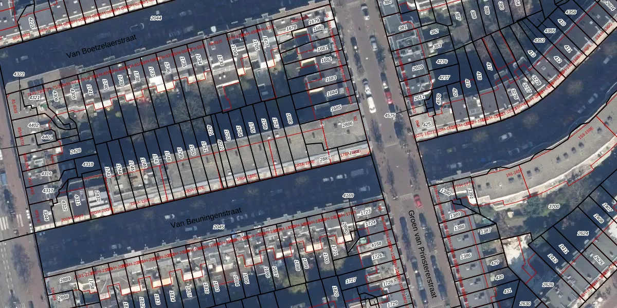 Het perceel waarop Van Beuningenstraat 182-C staat heeft een oppervlakte van 66 m². Dit is een klein perceel. De perceeloppervlakte wordt geregistreerd door het Kadaster. Gedetailleerde informatie over de maten van dit perceel kunt u vinden in het rapport Kadastrale kaart met maatvoering van Van Beuningenstraat 182-C.