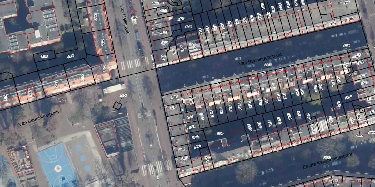Het perceel waarop Van Beuningenstraat 213-3 staat heeft een oppervlakte van 63 m². Dit is een klein perceel. De perceeloppervlakte wordt geregistreerd door het Kadaster. Gedetailleerde informatie over de maten van dit perceel kunt u vinden in het rapport Kadastrale kaart met maatvoering van Van Beuningenstraat 213-3.