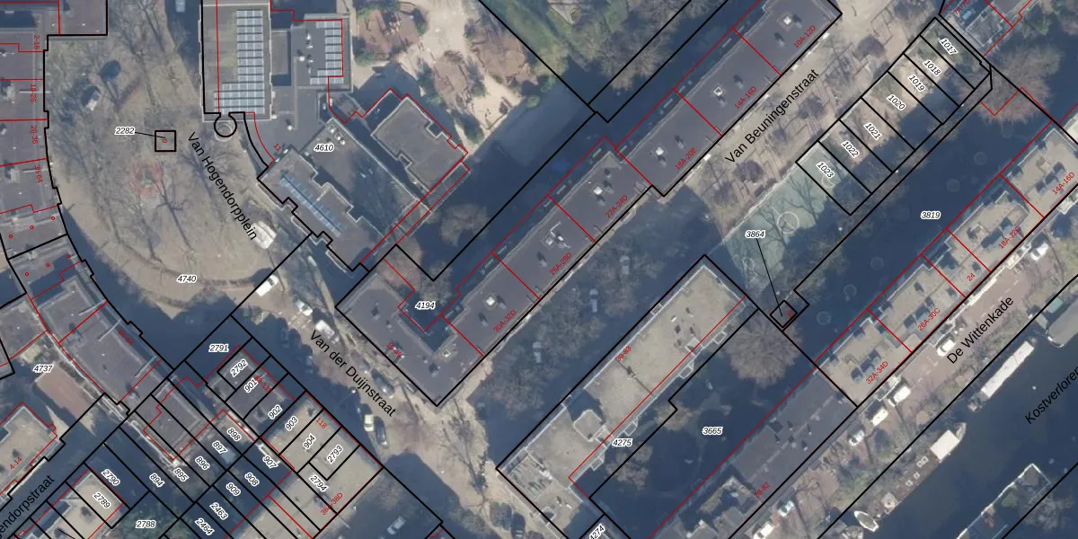 Het adres is gelegen op perceel 4194 in de sectie Y en de kadastrale gemeente Amsterdam. De kadastrale aanduiding is aldus ASD21-Y-4194. De oppervlakte van het perceel is 1905 m². Dat is groter dan gemiddeld in Amsterdam, waar de gemiddelde perceeloppervlakte op 769,96 m² ligt. De grootste perceeloppervlakte in de kadastrale gemeente is 7,1 ha. De kleinste oppervlakte bedraagt 0 m². Op het perceel liggen in totaal 69 adressen. De laatste wijziging in het de Basisregistratie Kadaster (BRK) was op 17-05-2010.