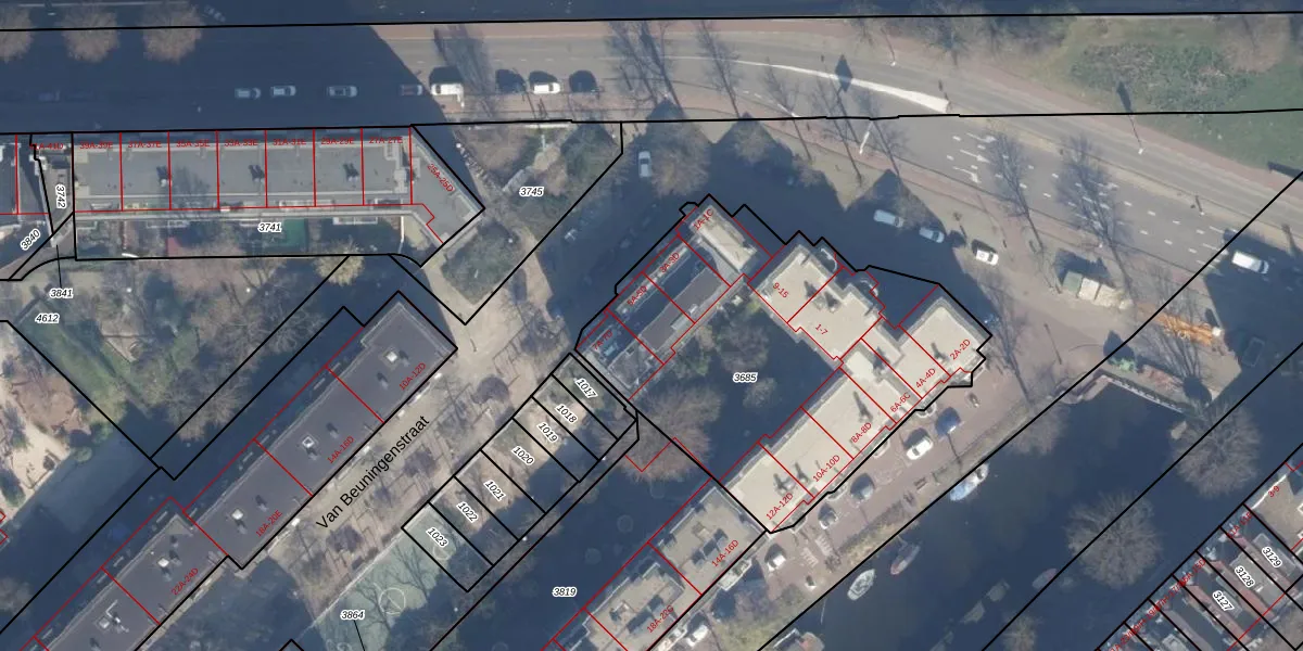 Van Beuningenstraat 5-D is gelegen op kadastraal perceel ASD21Y3685. Deze kadastrale aanduiding is uniek en wordt gebruikt door het Kadaster om eigendomsrechten en andere zakelijke rechten vast te leggen. Het perceel maakt onderdeel uit van de kadastrale gemeente Amsterdam.