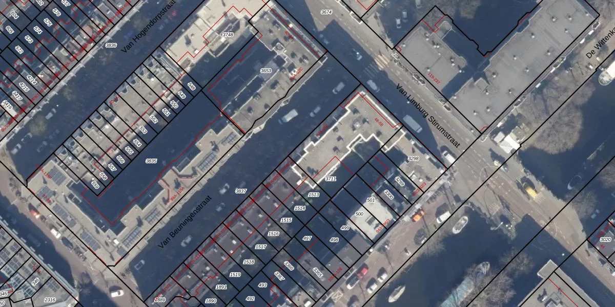 Het adres ligt op het perceel ASD21-Y-3711, dat zich in de kadastrale gemeente Amsterdam bevindt. Het perceel is kleiner dan gemiddeld in Amsterdam. Het perceel is 663 m² groot, terwijl het gemiddelde ligt op 770,38 m². De grootste perceeloppervlakte in de kadastrale gemeente is 7,1 ha. De kleinste oppervlakte bedraagt 0 m². Er zijn 27 adressen aanwezig op het perceel. In de Basisregistratie Kadaster (BRK) werden de grenzen van het perceel geregistreerd op 29-01-2007.
