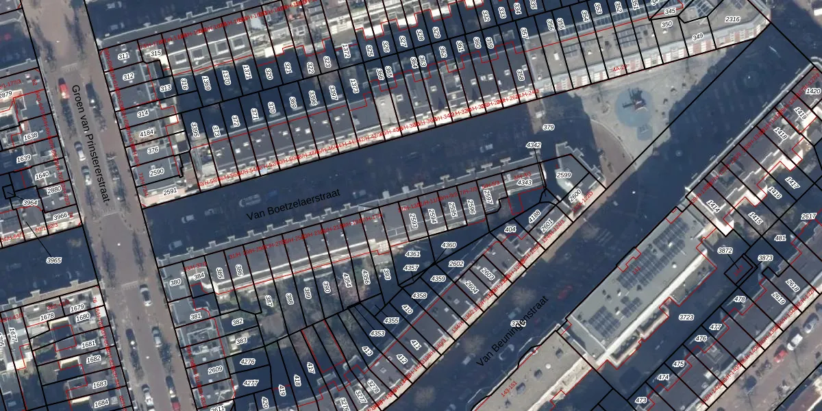 Van Boetzelaerstraat 13-3 is gelegen op kadastraal perceel ASD21Y2593. Deze kadastrale aanduiding is uniek en wordt gebruikt door het Kadaster om eigendomsrechten en andere zakelijke rechten vast te leggen. Het perceel maakt onderdeel uit van de kadastrale gemeente Amsterdam.