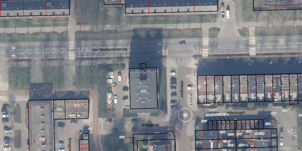 Het perceel waarop Van Boshuizenstraat 171 staat heeft een oppervlakte van 491 m². Dit is een groot perceel. De perceeloppervlakte wordt geregistreerd door het Kadaster. Gedetailleerde informatie over de maten van dit perceel kunt u vinden in het rapport Kadastrale kaart met maatvoering van Van Boshuizenstraat 171.