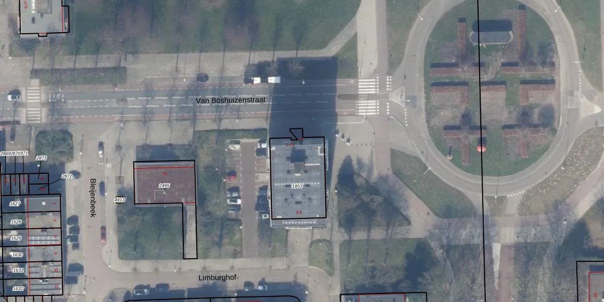Het perceel waarop Van Boshuizenstraat 23 staat heeft een oppervlakte van 491 m². Dit is een groot perceel. De perceeloppervlakte wordt geregistreerd door het Kadaster. Gedetailleerde informatie over de maten van dit perceel kunt u vinden in het rapport Kadastrale kaart met maatvoering van Van Boshuizenstraat 23.