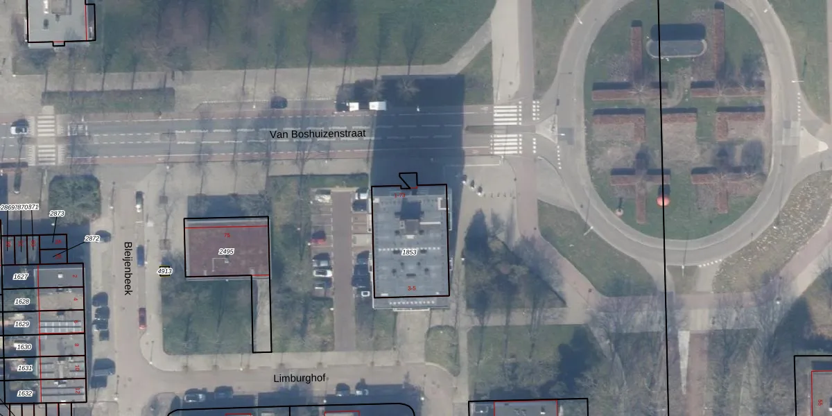 Het perceel waarop Van Boshuizenstraat 27 staat heeft een oppervlakte van 491 m². Dit is een groot perceel. De perceeloppervlakte wordt geregistreerd door het Kadaster. Gedetailleerde informatie over de maten van dit perceel kunt u vinden in het rapport Kadastrale kaart met maatvoering van Van Boshuizenstraat 27.