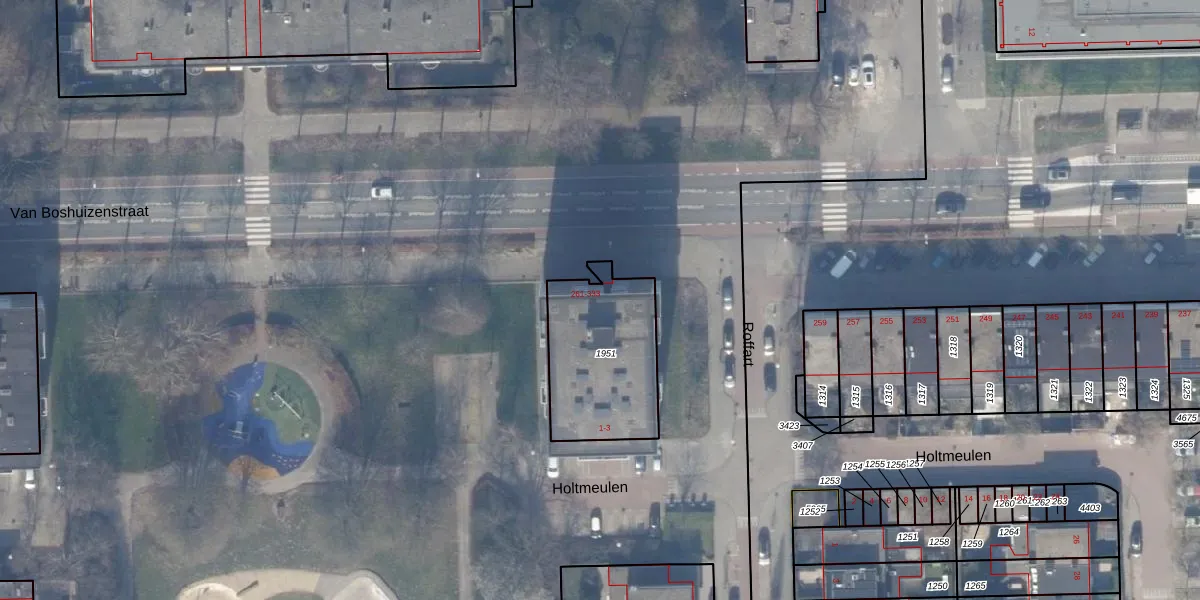 Het perceel waarop Van Boshuizenstraat 287 staat heeft een oppervlakte van 491 m². Dit is een groot perceel. De perceeloppervlakte wordt geregistreerd door het Kadaster. Gedetailleerde informatie over de maten van dit perceel kunt u vinden in het rapport Kadastrale kaart met maatvoering van Van Boshuizenstraat 287.