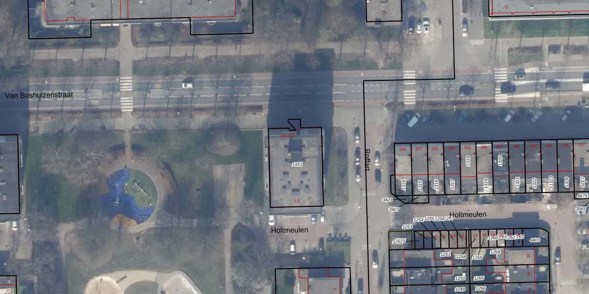 Het perceel waarop Van Boshuizenstraat 311 staat heeft een oppervlakte van 491 m². Dit is een groot perceel. De perceeloppervlakte wordt geregistreerd door het Kadaster. Gedetailleerde informatie over de maten van dit perceel kunt u vinden in het rapport Kadastrale kaart met maatvoering van Van Boshuizenstraat 311.