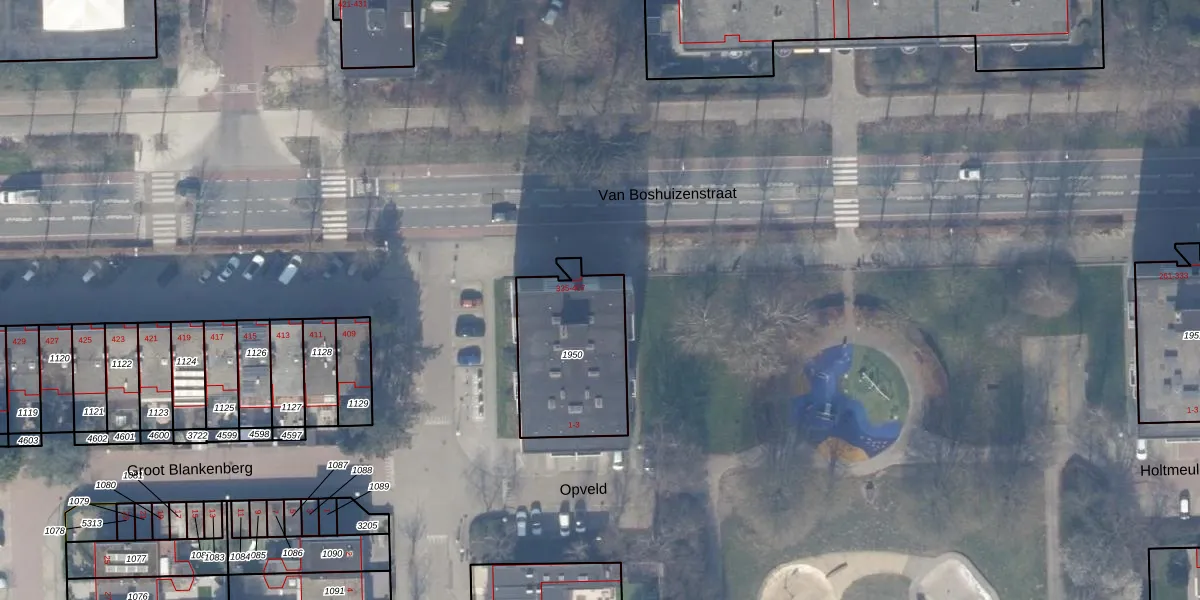 Het perceel waarop Van Boshuizenstraat 375 staat heeft een oppervlakte van 491 m². Dit is een groot perceel. De perceeloppervlakte wordt geregistreerd door het Kadaster. Gedetailleerde informatie over de maten van dit perceel kunt u vinden in het rapport Kadastrale kaart met maatvoering van Van Boshuizenstraat 375.