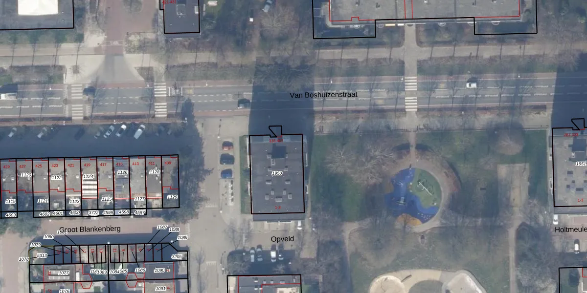 Het perceel waarop Van Boshuizenstraat 387 staat heeft een oppervlakte van 491 m². Dit is een groot perceel. De perceeloppervlakte wordt geregistreerd door het Kadaster. Gedetailleerde informatie over de maten van dit perceel kunt u vinden in het rapport Kadastrale kaart met maatvoering van Van Boshuizenstraat 387.