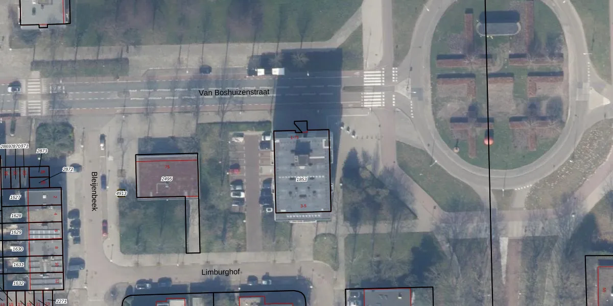Het perceel waarop Van Boshuizenstraat 45 staat heeft een oppervlakte van 491 m². Dit is een groot perceel. De perceeloppervlakte wordt geregistreerd door het Kadaster. Gedetailleerde informatie over de maten van dit perceel kunt u vinden in het rapport Kadastrale kaart met maatvoering van Van Boshuizenstraat 45.