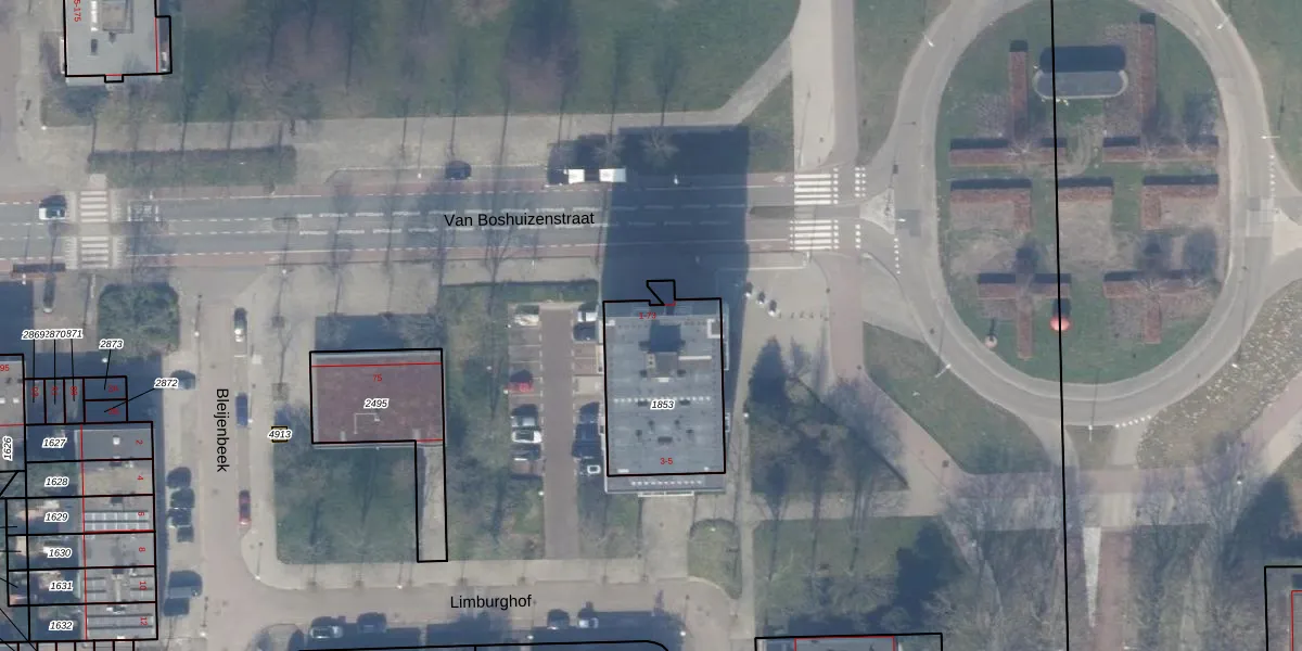 Het perceel waarop Van Boshuizenstraat 7 staat heeft een oppervlakte van 491 m². Dit is een groot perceel. De perceeloppervlakte wordt geregistreerd door het Kadaster. Gedetailleerde informatie over de maten van dit perceel kunt u vinden in het rapport Kadastrale kaart met maatvoering van Van Boshuizenstraat 7.