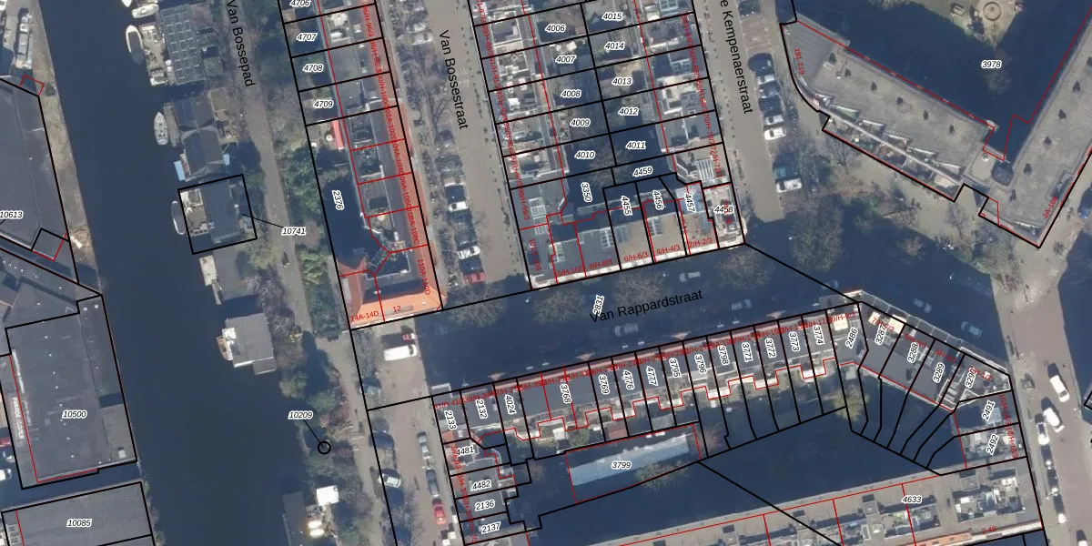 Van Bossestraat 103 is gelegen op kadastraal perceel ASD21Y3350. Deze kadastrale aanduiding is uniek en wordt gebruikt door het Kadaster om eigendomsrechten en andere zakelijke rechten vast te leggen. Het perceel maakt onderdeel uit van de kadastrale gemeente Amsterdam.