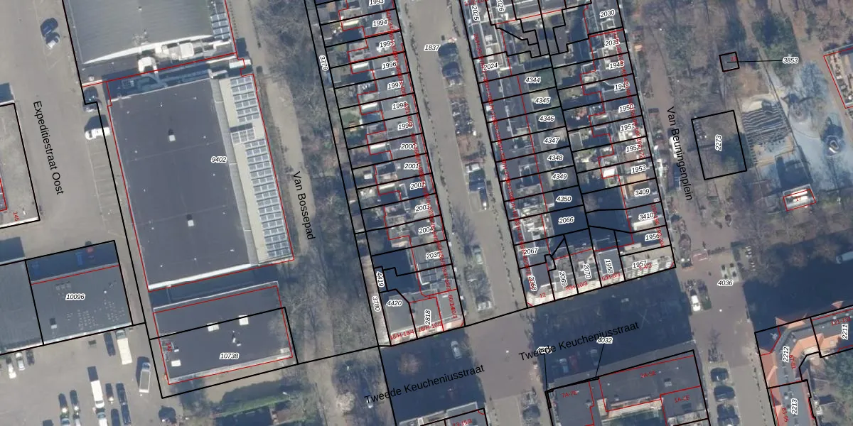 Het perceel waarop Van Bossestraat 52-1 staat heeft een oppervlakte van 94 m². Dit is een klein perceel. De perceeloppervlakte wordt geregistreerd door het Kadaster. Gedetailleerde informatie over de maten van dit perceel kunt u vinden in het rapport Kadastrale kaart met maatvoering van Van Bossestraat 52-1.