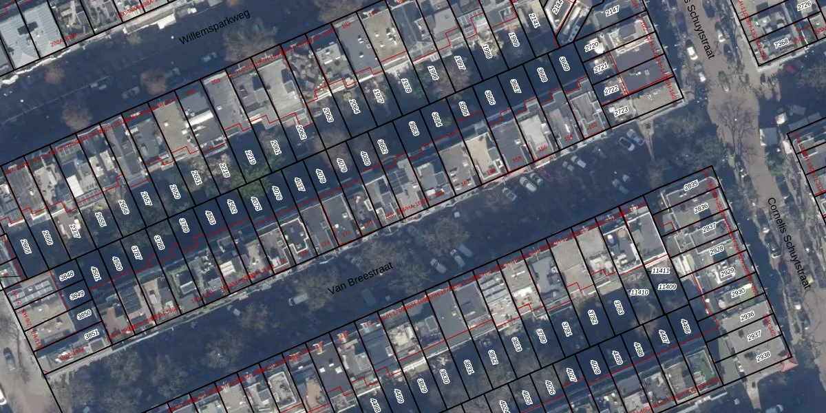 Het perceel waarop Van Breestraat 166-3A staat heeft een oppervlakte van 157 m². Dit is een middelgroot perceel. De perceeloppervlakte wordt geregistreerd door het Kadaster. Gedetailleerde informatie over de maten van dit perceel kunt u vinden in het rapport Kadastrale kaart met maatvoering van Van Breestraat 166-3A.