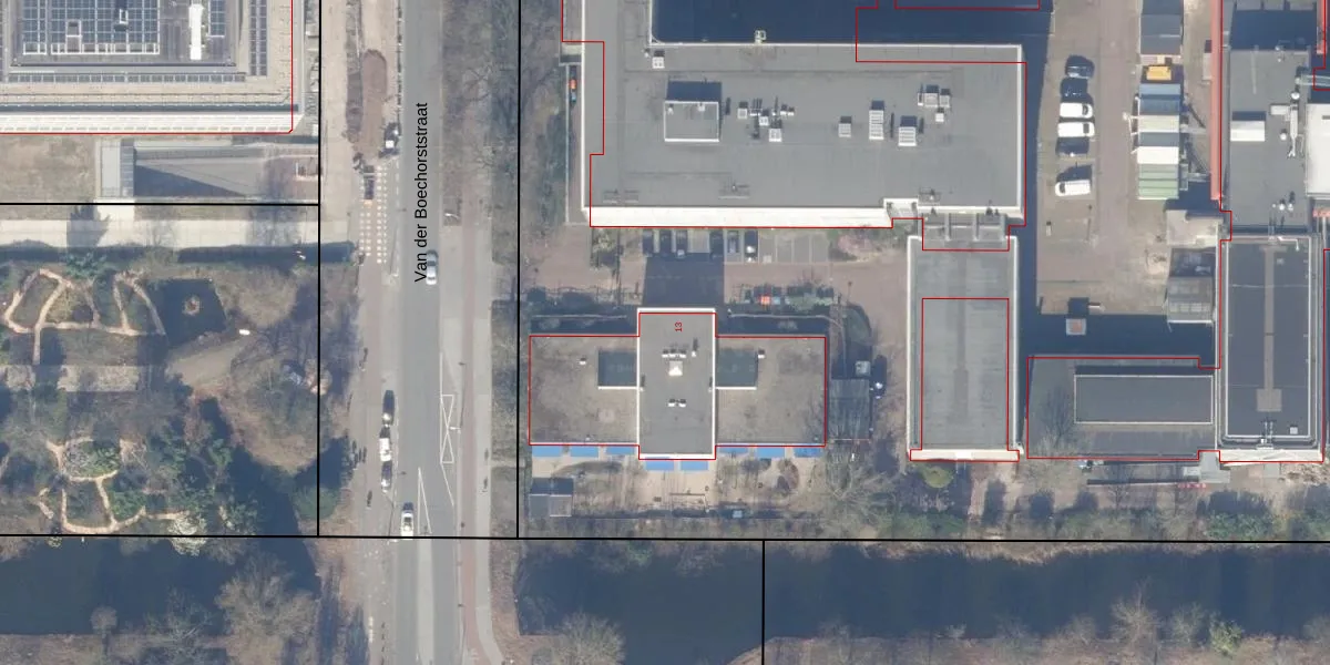 Het perceel waarop Van der Boechorststraat 13 staat heeft een oppervlakte van 11,8 ha. Dit is een zeer groot perceel. De perceeloppervlakte wordt geregistreerd door het Kadaster. Gedetailleerde informatie over de maten van dit perceel kunt u vinden in het rapport Kadastrale kaart met maatvoering van Van der Boechorststraat 13.