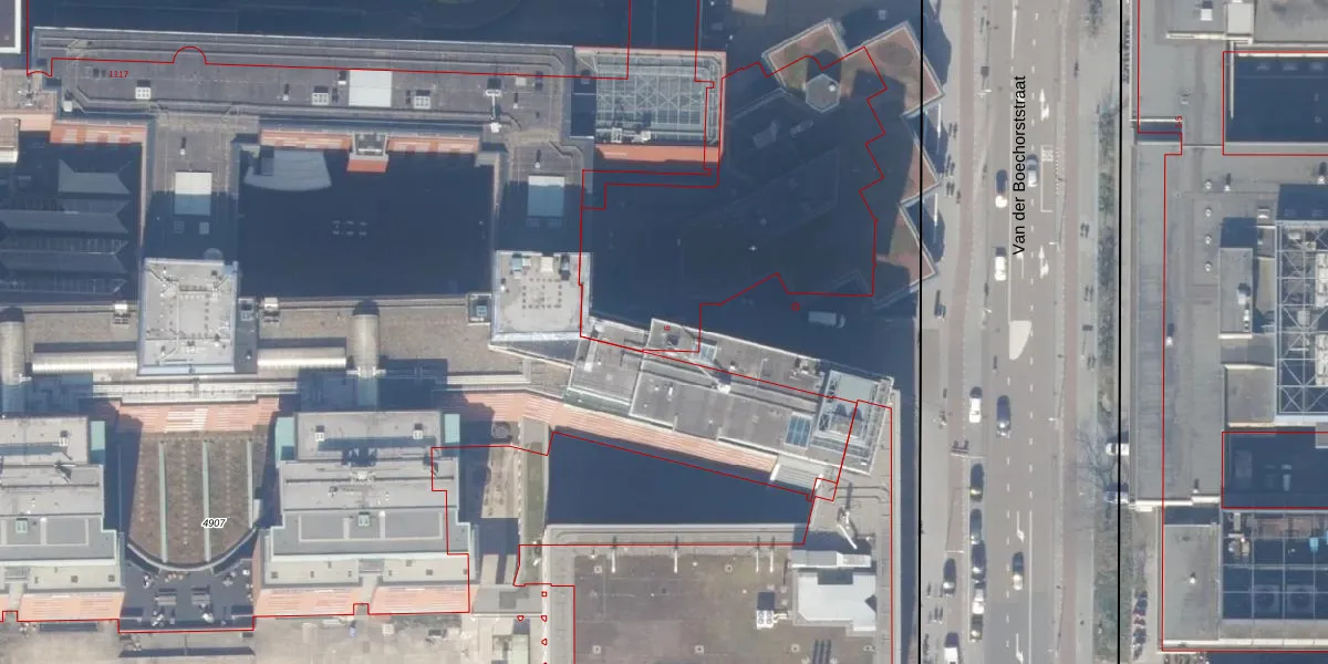 Het perceel waarop Van der Boechorststraat 6 staat heeft een oppervlakte van 4,8 ha. Dit is een zeer groot perceel. De perceeloppervlakte wordt geregistreerd door het Kadaster. Gedetailleerde informatie over de maten van dit perceel kunt u vinden in het rapport Kadastrale kaart met maatvoering van Van der Boechorststraat 6.