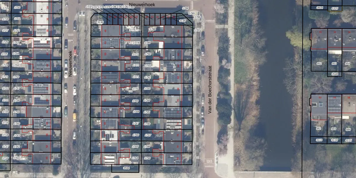 Het perceel waarop Van der Boechorststraat 68 staat heeft een oppervlakte van 185 m². Dit is een middelgroot perceel. De perceeloppervlakte wordt geregistreerd door het Kadaster. Gedetailleerde informatie over de maten van dit perceel kunt u vinden in het rapport Kadastrale kaart met maatvoering van Van der Boechorststraat 68.