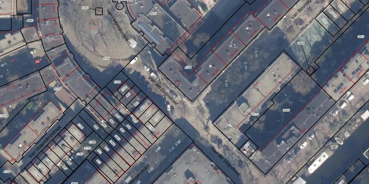 Van der Duijnstraat 45 is gelegen op kadastraal perceel ASD21Y4194. Deze kadastrale aanduiding is uniek en wordt gebruikt door het Kadaster om eigendomsrechten en andere zakelijke rechten vast te leggen. Het perceel maakt onderdeel uit van de kadastrale gemeente Amsterdam.