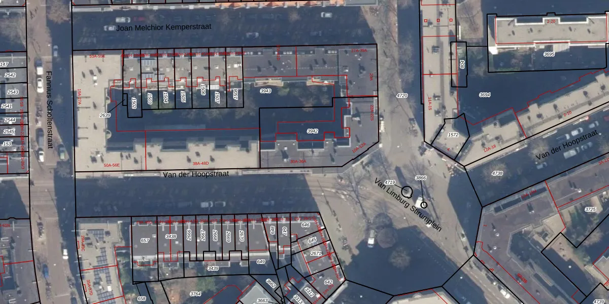 Het adres ligt op het perceel ASD21-Y-3942, dat zich in de kadastrale gemeente Amsterdam bevindt. Het perceel is kleiner dan gemiddeld in Amsterdam. Het perceel is 767 m² groot, terwijl het gemiddelde ligt op 769,96 m². Het kleinste perceel in de kadastrale gemeente is 0 m² groot. De grootste perceeloppervlakte is 7,1 ha. Op het perceel liggen in totaal 29 adressen. In de Basisregistratie Kadaster (BRK) werden de grenzen van het perceel geregistreerd op 29-01-2007.