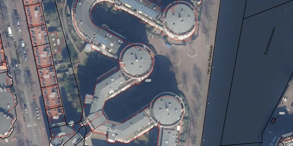 Van der Palmkade 102 is gelegen op kadastraal perceel ASD21Y4005. Deze kadastrale aanduiding is uniek en wordt gebruikt door het Kadaster om eigendomsrechten en andere zakelijke rechten vast te leggen. Het perceel maakt onderdeel uit van de kadastrale gemeente Amsterdam.