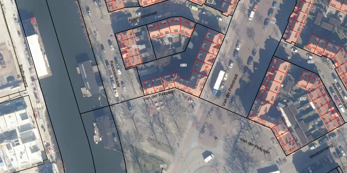 Van der Pekplein 3-B is gelegen op kadastraal perceel ASD07K9578. Deze kadastrale aanduiding is uniek en wordt gebruikt door het Kadaster om eigendomsrechten en andere zakelijke rechten vast te leggen. Het perceel maakt onderdeel uit van de kadastrale gemeente Amsterdam.