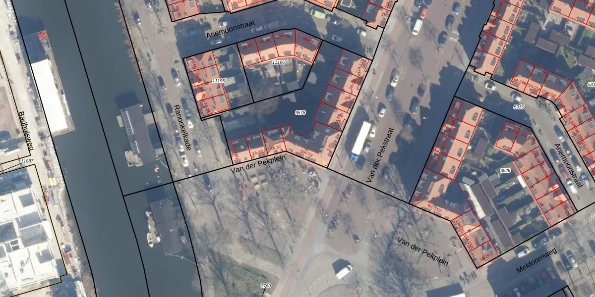 Van der Pekplein 5-B is gelegen op kadastraal perceel ASD07K9578. Deze kadastrale aanduiding is uniek en wordt gebruikt door het Kadaster om eigendomsrechten en andere zakelijke rechten vast te leggen. Het perceel maakt onderdeel uit van de kadastrale gemeente Amsterdam.
