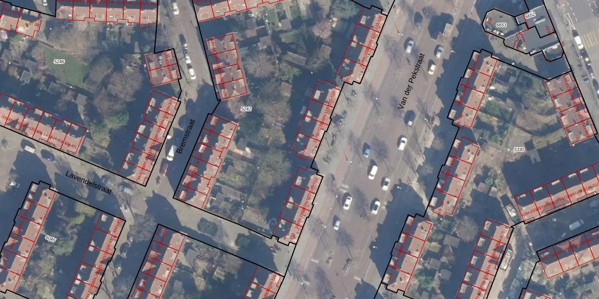 Het perceel waarop Van der Pekstraat 113 staat heeft een oppervlakte van 3990 m². Dit is een zeer groot perceel. De perceeloppervlakte wordt geregistreerd door het Kadaster. Gedetailleerde informatie over de maten van dit perceel kunt u vinden in het rapport Kadastrale kaart met maatvoering van Van der Pekstraat 113.