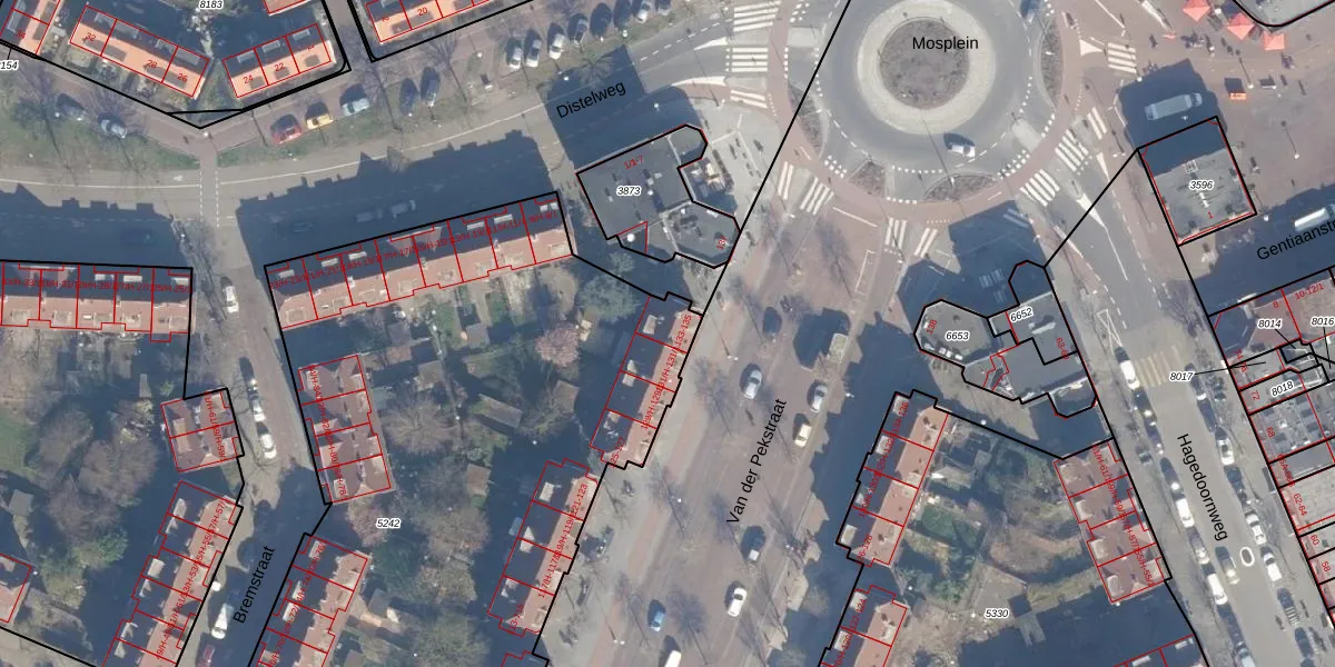 Het perceel waarop Van der Pekstraat 133 staat heeft een oppervlakte van 3990 m². Dit is een zeer groot perceel. De perceeloppervlakte wordt geregistreerd door het Kadaster. Gedetailleerde informatie over de maten van dit perceel kunt u vinden in het rapport Kadastrale kaart met maatvoering van Van der Pekstraat 133.