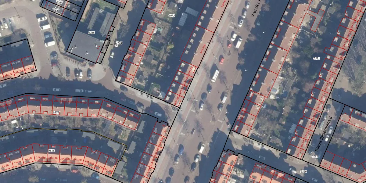 Het perceel waarop Van der Pekstraat 41-H staat heeft een oppervlakte van 4143 m². Dit is een zeer groot perceel. De perceeloppervlakte wordt geregistreerd door het Kadaster. Gedetailleerde informatie over de maten van dit perceel kunt u vinden in het rapport Kadastrale kaart met maatvoering van Van der Pekstraat 41-H.