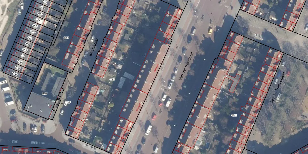 Het perceel waarop Van der Pekstraat 55-2 staat heeft een oppervlakte van 4143 m². Dit is een zeer groot perceel. De perceeloppervlakte wordt geregistreerd door het Kadaster. Gedetailleerde informatie over de maten van dit perceel kunt u vinden in het rapport Kadastrale kaart met maatvoering van Van der Pekstraat 55-2.