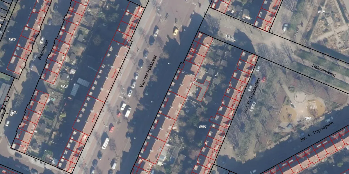 Het perceel waarop Van der Pekstraat 60-1 staat heeft een oppervlakte van 4225 m². Dit is een zeer groot perceel. De perceeloppervlakte wordt geregistreerd door het Kadaster. Gedetailleerde informatie over de maten van dit perceel kunt u vinden in het rapport Kadastrale kaart met maatvoering van Van der Pekstraat 60-1.