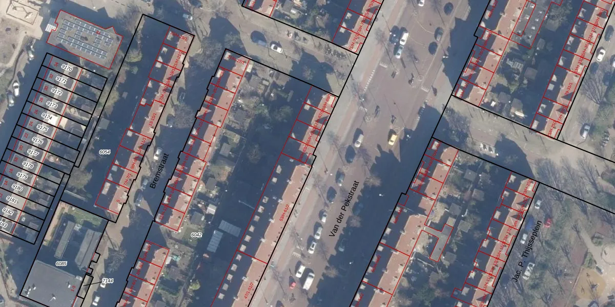 Het perceel waarop Van der Pekstraat 63-H staat heeft een oppervlakte van 4143 m². Dit is een zeer groot perceel. De perceeloppervlakte wordt geregistreerd door het Kadaster. Gedetailleerde informatie over de maten van dit perceel kunt u vinden in het rapport Kadastrale kaart met maatvoering van Van der Pekstraat 63-H.