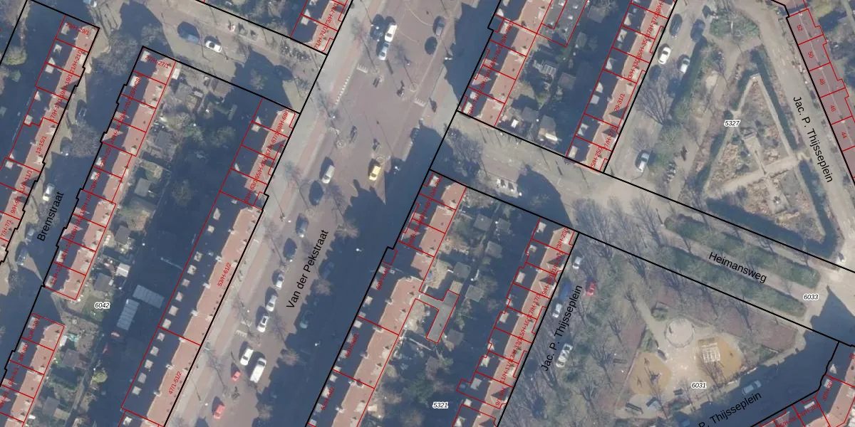 Het perceel waarop Van der Pekstraat 68-H staat heeft een oppervlakte van 4225 m². Dit is een zeer groot perceel. De perceeloppervlakte wordt geregistreerd door het Kadaster. Gedetailleerde informatie over de maten van dit perceel kunt u vinden in het rapport Kadastrale kaart met maatvoering van Van der Pekstraat 68-H.