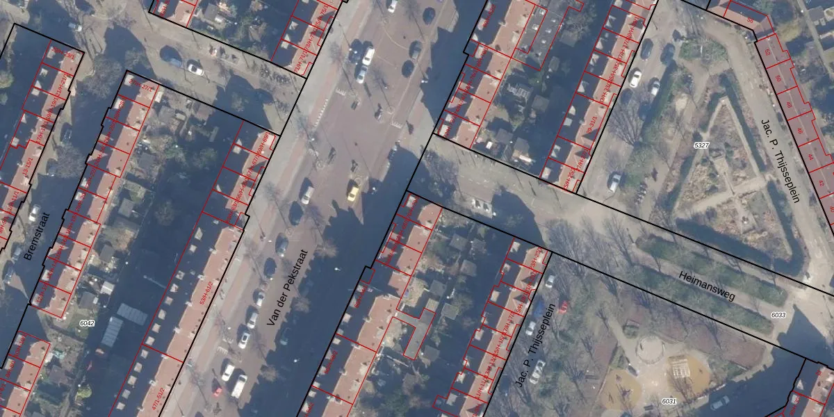Het perceel waarop Van der Pekstraat 70-1 staat heeft een oppervlakte van 4225 m². Dit is een zeer groot perceel. De perceeloppervlakte wordt geregistreerd door het Kadaster. Gedetailleerde informatie over de maten van dit perceel kunt u vinden in het rapport Kadastrale kaart met maatvoering van Van der Pekstraat 70-1.