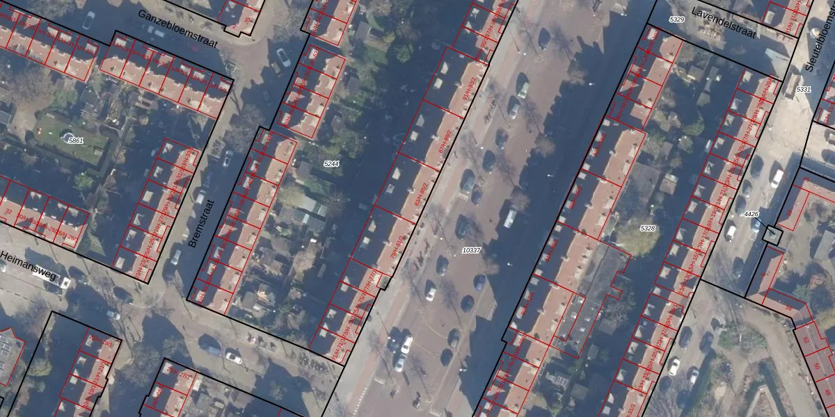 Het perceel waarop Van der Pekstraat 83-H staat heeft een oppervlakte van 4530 m². Dit is een zeer groot perceel. De perceeloppervlakte wordt geregistreerd door het Kadaster. Gedetailleerde informatie over de maten van dit perceel kunt u vinden in het rapport Kadastrale kaart met maatvoering van Van der Pekstraat 83-H.