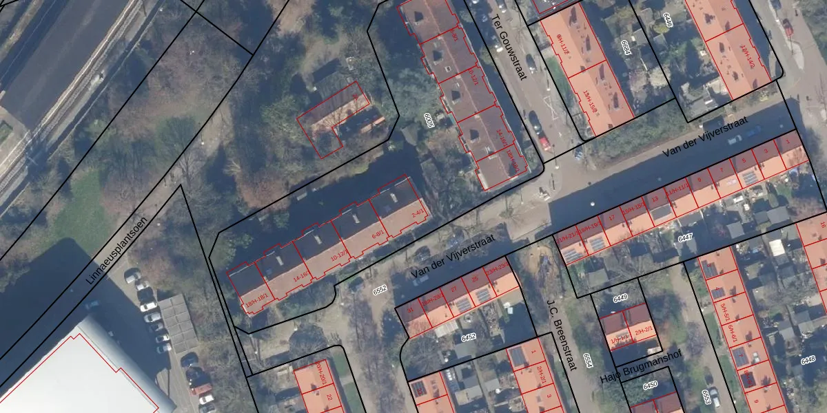 Het perceel waarop Van der Vijverstraat 2 staat heeft een oppervlakte van 2857 m². Dit is een zeer groot perceel. De perceeloppervlakte wordt geregistreerd door het Kadaster. Gedetailleerde informatie over de maten van dit perceel kunt u vinden in het rapport Kadastrale kaart met maatvoering van Van der Vijverstraat 2.