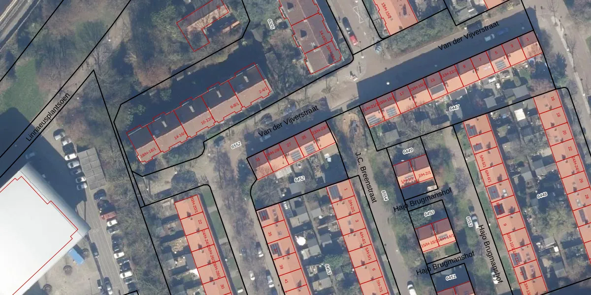 Het perceel waarop Van der Vijverstraat 27 staat heeft een oppervlakte van 610 m². Dit is een groot perceel. De perceeloppervlakte wordt geregistreerd door het Kadaster. Gedetailleerde informatie over de maten van dit perceel kunt u vinden in het rapport Kadastrale kaart met maatvoering van Van der Vijverstraat 27.