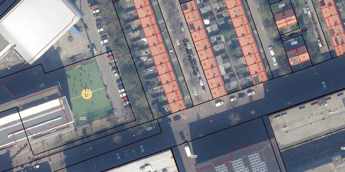 Het perceel waarop Van der Vijverstraat 38 staat heeft een oppervlakte van 1775 m². Dit is een zeer groot perceel. De perceeloppervlakte wordt geregistreerd door het Kadaster. Gedetailleerde informatie over de maten van dit perceel kunt u vinden in het rapport Kadastrale kaart met maatvoering van Van der Vijverstraat 38.