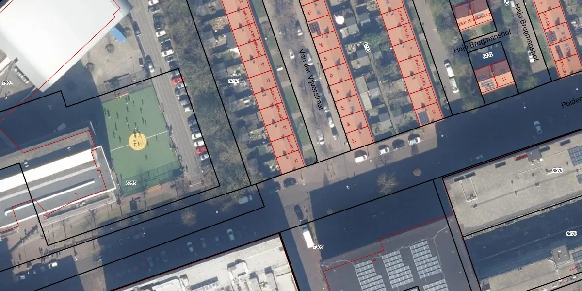 Het perceel waarop Van der Vijverstraat 40-1 staat heeft een oppervlakte van 1775 m². Dit is een zeer groot perceel. De perceeloppervlakte wordt geregistreerd door het Kadaster. Gedetailleerde informatie over de maten van dit perceel kunt u vinden in het rapport Kadastrale kaart met maatvoering van Van der Vijverstraat 40-1.