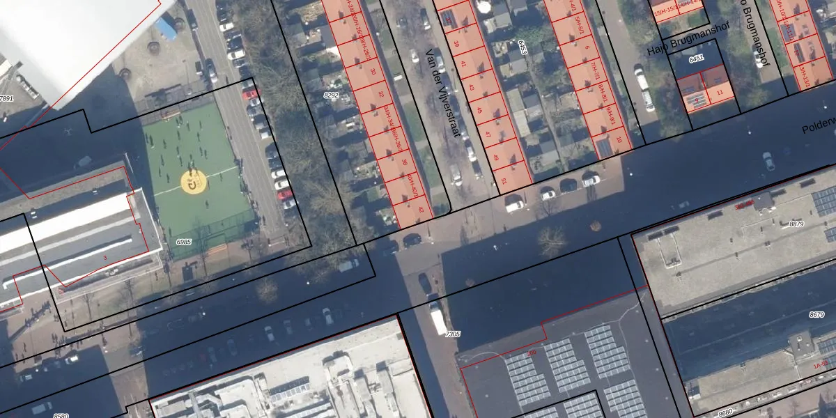 Het perceel waarop Van der Vijverstraat 42 staat heeft een oppervlakte van 1775 m². Dit is een zeer groot perceel. De perceeloppervlakte wordt geregistreerd door het Kadaster. Gedetailleerde informatie over de maten van dit perceel kunt u vinden in het rapport Kadastrale kaart met maatvoering van Van der Vijverstraat 42.