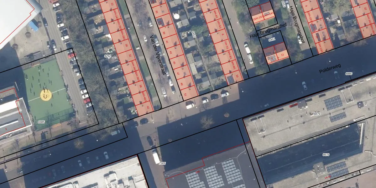 Het perceel waarop Van der Vijverstraat 51 staat heeft een oppervlakte van 2150 m². Dit is een zeer groot perceel. De perceeloppervlakte wordt geregistreerd door het Kadaster. Gedetailleerde informatie over de maten van dit perceel kunt u vinden in het rapport Kadastrale kaart met maatvoering van Van der Vijverstraat 51.