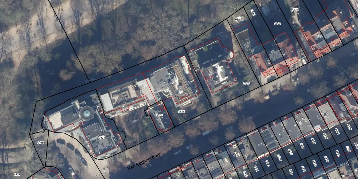 Het perceel waarop Van Eeghenstraat 208 staat heeft een oppervlakte van 2290 m². Dit is een zeer groot perceel. De perceeloppervlakte wordt geregistreerd door het Kadaster. Gedetailleerde informatie over de maten van dit perceel kunt u vinden in het rapport Kadastrale kaart met maatvoering van Van Eeghenstraat 208.