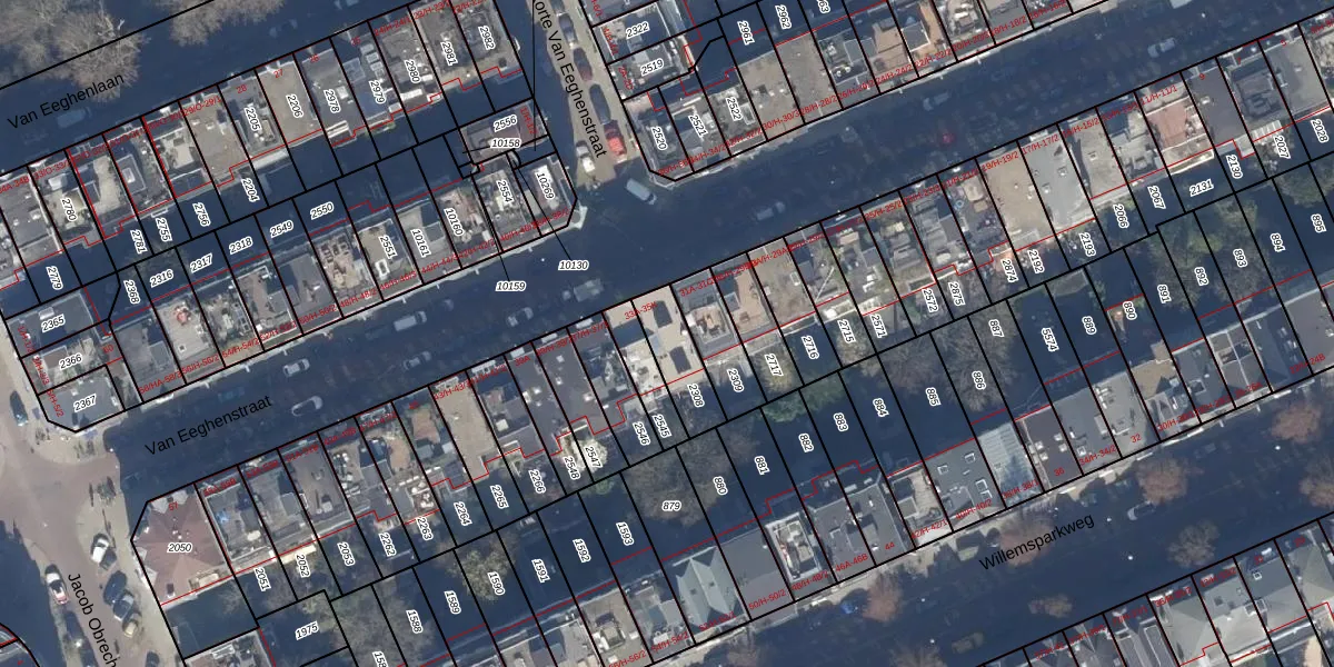 Van Eeghenstraat 33-E is gelegen op kadastraal perceel ASD17U2308. Deze kadastrale aanduiding is uniek en wordt gebruikt door het Kadaster om eigendomsrechten en andere zakelijke rechten vast te leggen. Het perceel maakt onderdeel uit van de kadastrale gemeente Amsterdam.