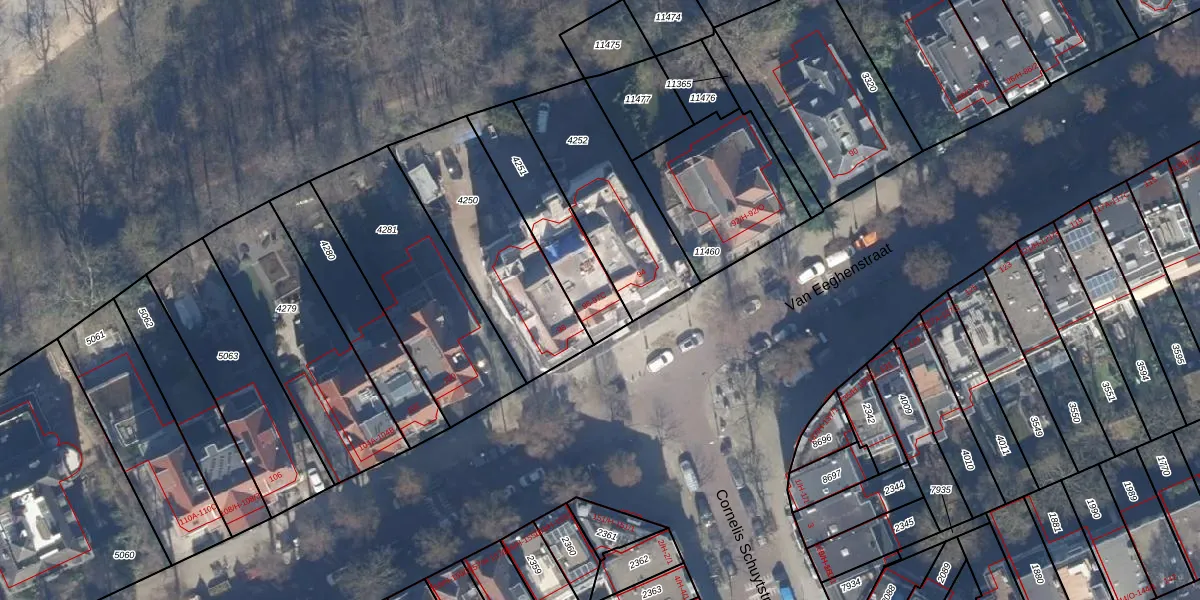 Het perceel waarop Van Eeghenstraat 96 staat heeft een oppervlakte van 326 m². Dit is een groot perceel. De perceeloppervlakte wordt geregistreerd door het Kadaster. Gedetailleerde informatie over de maten van dit perceel kunt u vinden in het rapport Kadastrale kaart met maatvoering van Van Eeghenstraat 96.