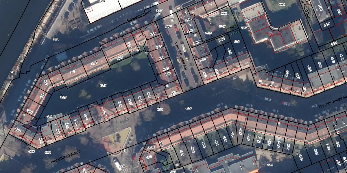 Van Effenstraat 12-1 is gelegen op kadastraal perceel ASD16T5033. Deze kadastrale aanduiding is uniek en wordt gebruikt door het Kadaster om eigendomsrechten en andere zakelijke rechten vast te leggen. Het perceel maakt onderdeel uit van de kadastrale gemeente Amsterdam.