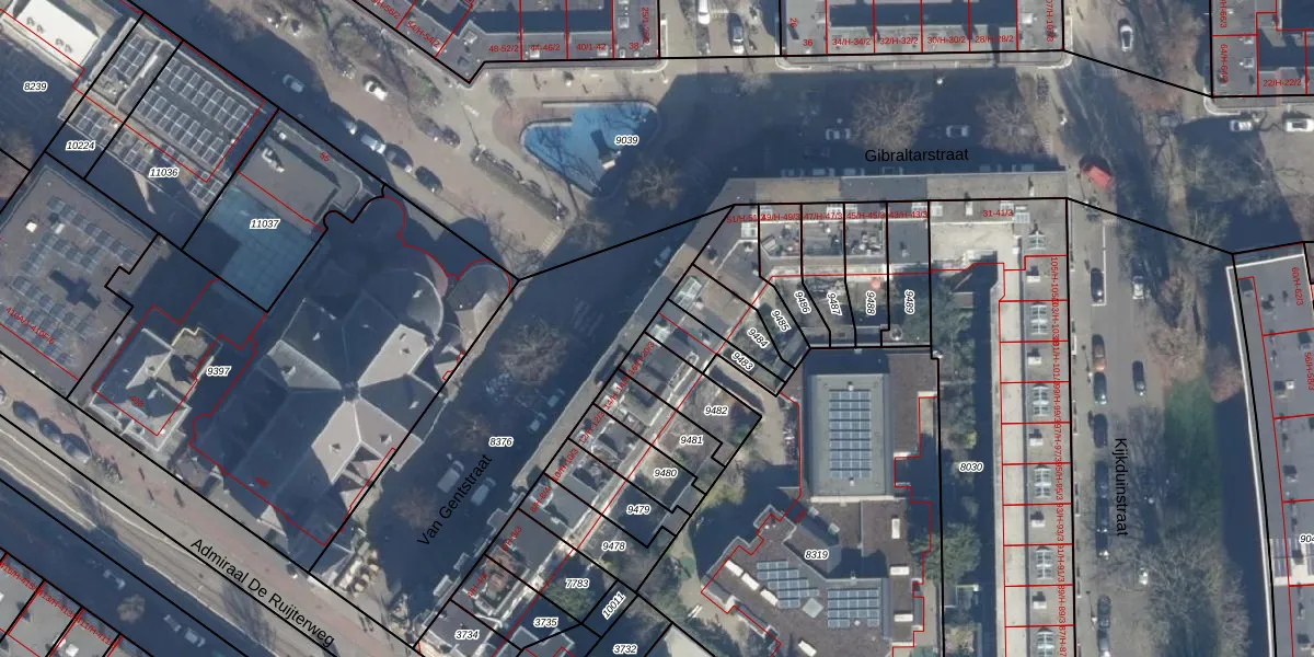 Het perceel waarop Van Gentstraat 18-H staat heeft een oppervlakte van 98 m². Dit is een klein perceel. De perceeloppervlakte wordt geregistreerd door het Kadaster. Gedetailleerde informatie over de maten van dit perceel kunt u vinden in het rapport Kadastrale kaart met maatvoering van Van Gentstraat 18-H.