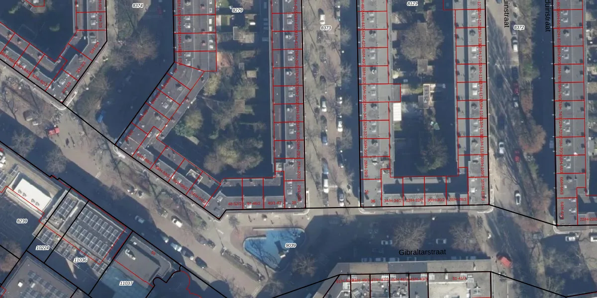 Het perceel waarop Van Gentstraat 29-1 staat heeft een oppervlakte van 5791 m². Dit is een zeer groot perceel. De perceeloppervlakte wordt geregistreerd door het Kadaster. Gedetailleerde informatie over de maten van dit perceel kunt u vinden in het rapport Kadastrale kaart met maatvoering van Van Gentstraat 29-1.