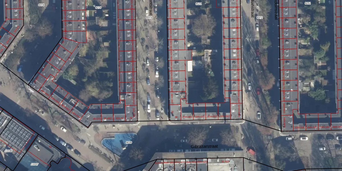 Het perceel waarop Van Gentstraat 30-H staat heeft een oppervlakte van 5379 m². Dit is een zeer groot perceel. De perceeloppervlakte wordt geregistreerd door het Kadaster. Gedetailleerde informatie over de maten van dit perceel kunt u vinden in het rapport Kadastrale kaart met maatvoering van Van Gentstraat 30-H.